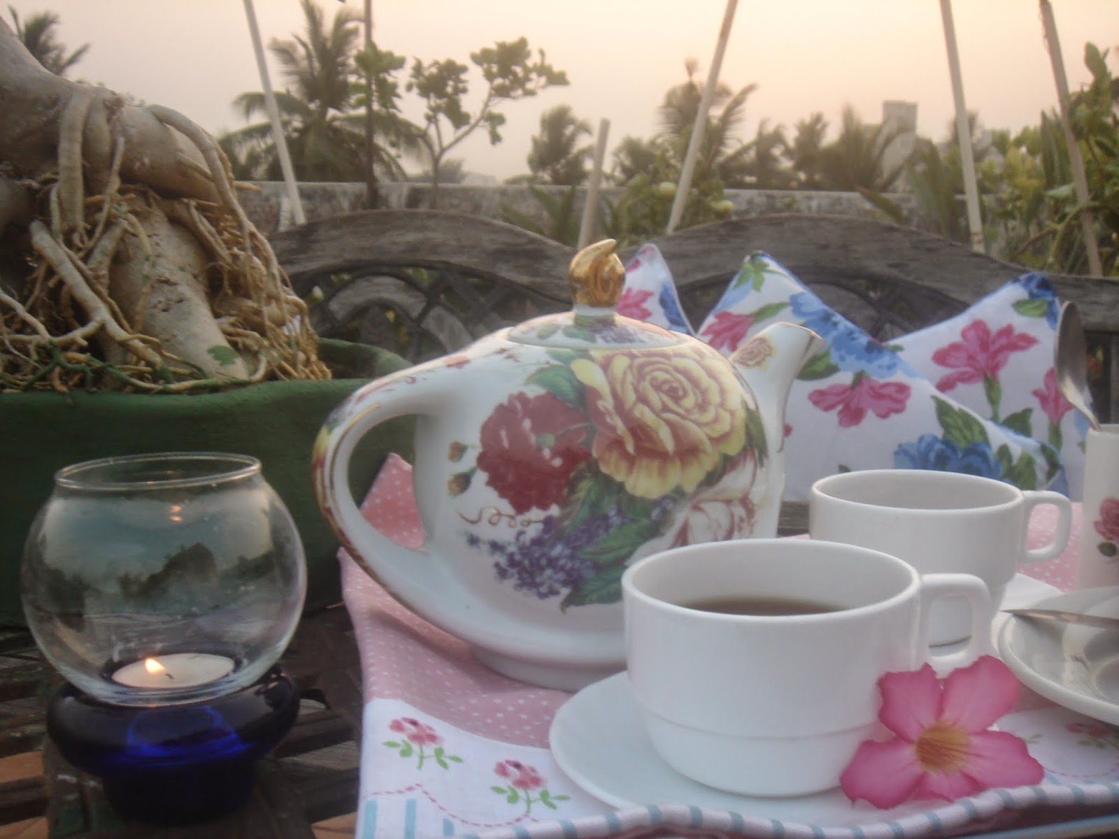 Sometime you get into mood to enjoy nature and this evening was one of its kind for me. Our pleasures are deeper to see a coloured garden with splashes of Pink, Orange, Red and yellows. A grass blade is more than a grass blade with a tiny dew drop on it early in the morning. The notes of a bird is more than a song to hear. The scent of flowers are more than sweet fragrance to feel. The moments are mystical just before and just after sun set. The satisfaction with regard to nature is sensual. Some times many feel a day to be never to be given back day when we are amidst of natures beauty. Setting a tea table in the garden just before night fall was fulfilling for me.
