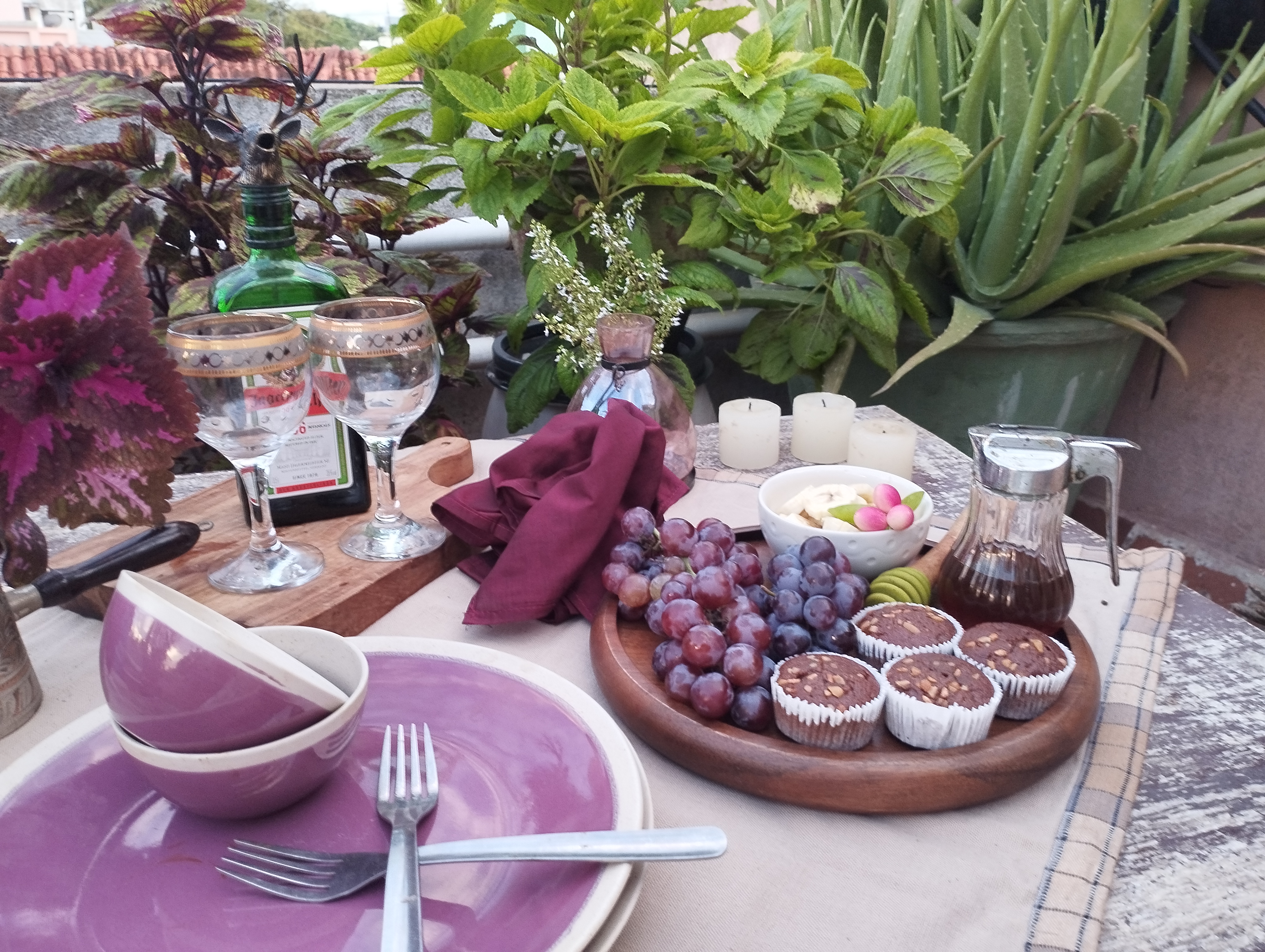 Missed my blogging to some extent and happy to share a Autumn's plum coloured table-setting done at our garden.
